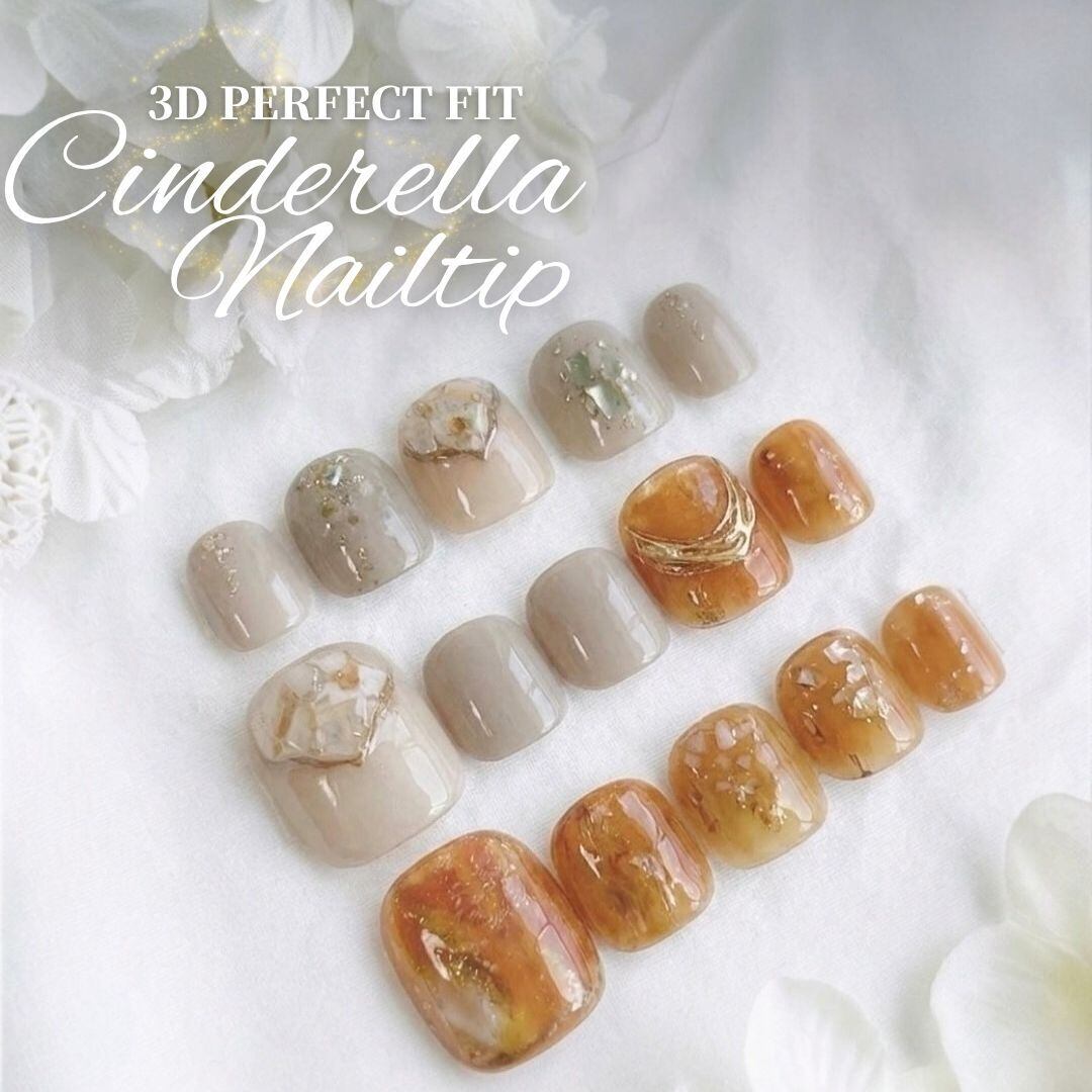 【人気ハンドデザインを足元にも】琥珀ニュアンスフットネイルー3D PERFECT CINDERELLA NAIL TIPー